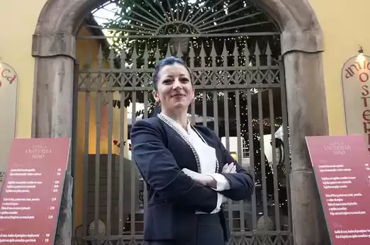 Raffinata osteria in una delle vie principali del centro, presenta un grande cancello che dà accesso ai tavoli dell’elegante cortile interno, attorno a cui si snodano le sale dell’osteria. È presente anche un bar e una sala con divanetti e camino. Diplomata alla scuola alberghiera, dopo anni di gavetta Mary diventa manager del locale. Simpatica e divertente, schietta, sicura di sé e del suo operato, sul lavoro “è una iena”. Le piace lavorare coi giovani perché apprendono bene i suoi insegnamenti e non a caso è una figura di riferimento per il personale. Propone una cucina tradizione e rivisitata, con grande attenzione all’impiattamento.